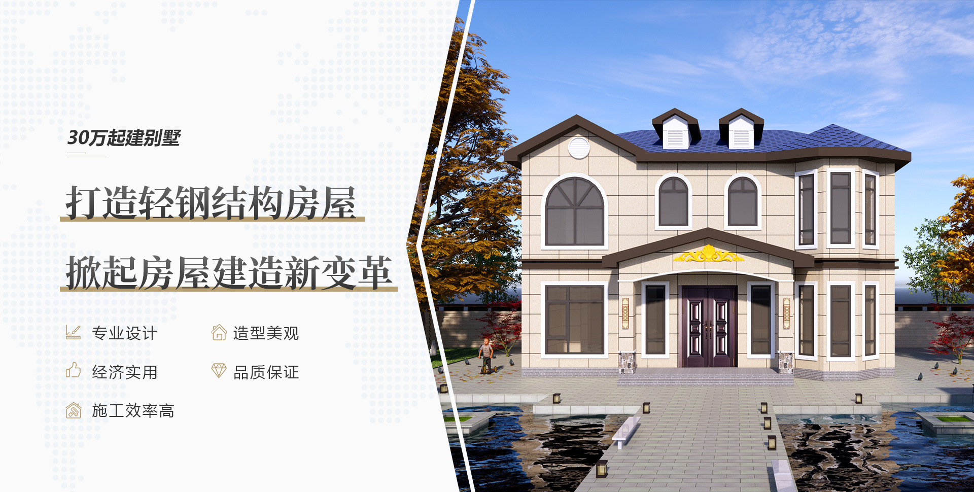 專業的設計師團隊,個性化定制輕鋼別墅高端住宅,擁有多年項目施工經驗,完成上千套鋼結構房屋的施工,完善的售后服務,讓您建房無憂!